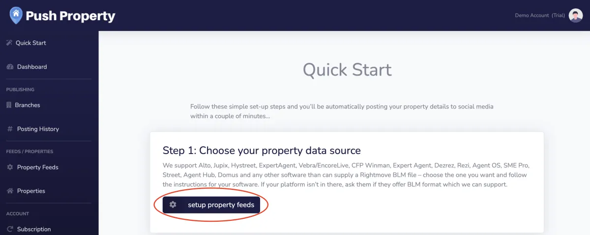 Click set up property feeds